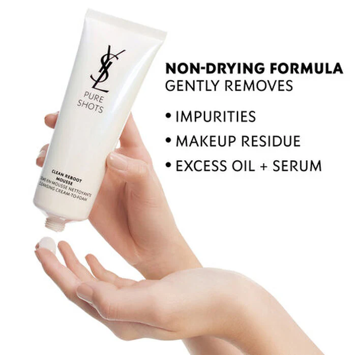 Sản phẩm mới của YSL Beauty là một lời nhắc nhở rằng chăm sóc da không chỉ là kết quả cuối cùng mà còn là trải nghiệm. Sữa rửa mặt YSL Pure Shots Clean Reboot Mousse Skin Purifying Cream-To-Foam Face Cleanser mời gọi người dùng tận hưởng quy trình làm sạch sang trọng hứa hẹn mang lại làn da khỏe mạnh và sáng mịn. Đó là một ví dụ hoàn hảo về cách chăm sóc da thích ứng với nhu cầu của nhóm khách hàng sành điệu, tìm kiếm các sản phẩm mang lại kết quả đồng thời giúp thoát khỏi những căng thẳng của cuộc sống thành thị. Pure Shots Clean Reboot Mousse sẵn sàng trở thành một sản phẩm chủ yếu trong chế độ làm đẹp của những người coi trọng sự hài hòa giữa sự sang trọng và chức năng trong quy trình chăm sóc da của họ.